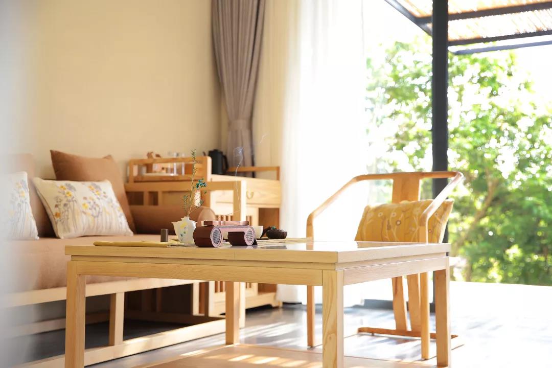 酒店客房内部设计简洁却不失特色,客房宽敞明亮、干净卫生,配套高品质的洗护套装和舒适的亲肤棉织品(浴巾、毛巾、手巾),提供24小时热水、冷气空调,茶席,香席,户外阳台等休闲设施。酒店提供一对一管家服务,让每一位顾客都能宾至如归,在自然环抱中放松心灵。